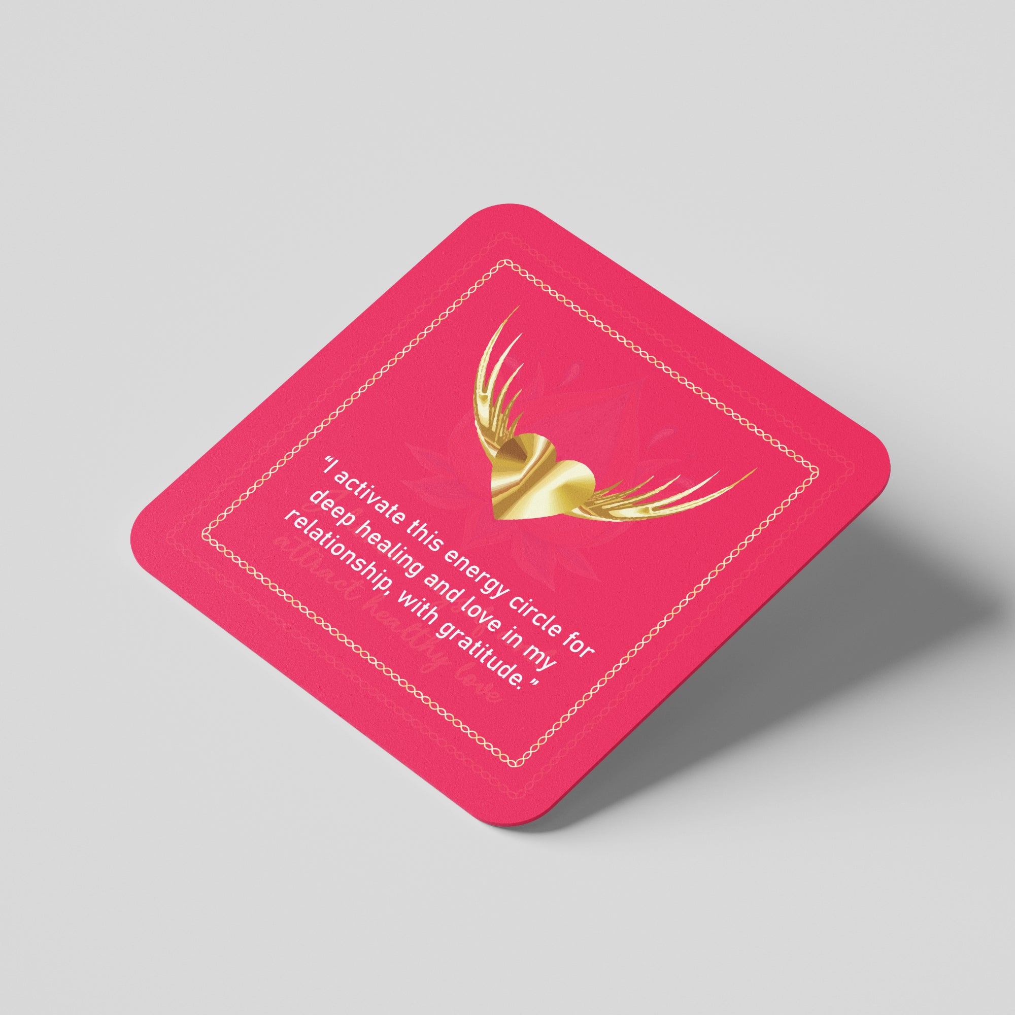 Invite divine love, emotional healing, and gratitude into your space with our Golden Heart Coaster. Designed with a radiant golden heart and wings, this coaster carries a powerful affirmation to activate loving and healing energies in relationships.
