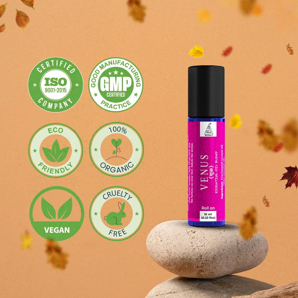 The Venus Essential Oil Roll-On is a luxurious planetary blend aligned with the gentle and magnetic energy of Venus (Shukra)—the planet of love, relationships, beauty, pleasure, and creativity. This roll-on is designed to enhance emotional connection, self-love, harmony, and attraction while soothing the heart and mind.